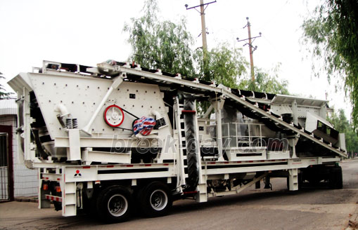 This new mobile crushing station mainly includes equipment of Jaw crusher PE400x600,Cone crusher PYD900, vibrating screen YZS1327, electrical control panel, conveyor belts and connecting parts. It is equipped with primary crusher and secondary crusher. Therefore the final output products will be in good shapes and can fully satisfy customer’s detailed requirement. The whole line was designed completely and reasonably. It also realizes the aim of energy save and easy to use.